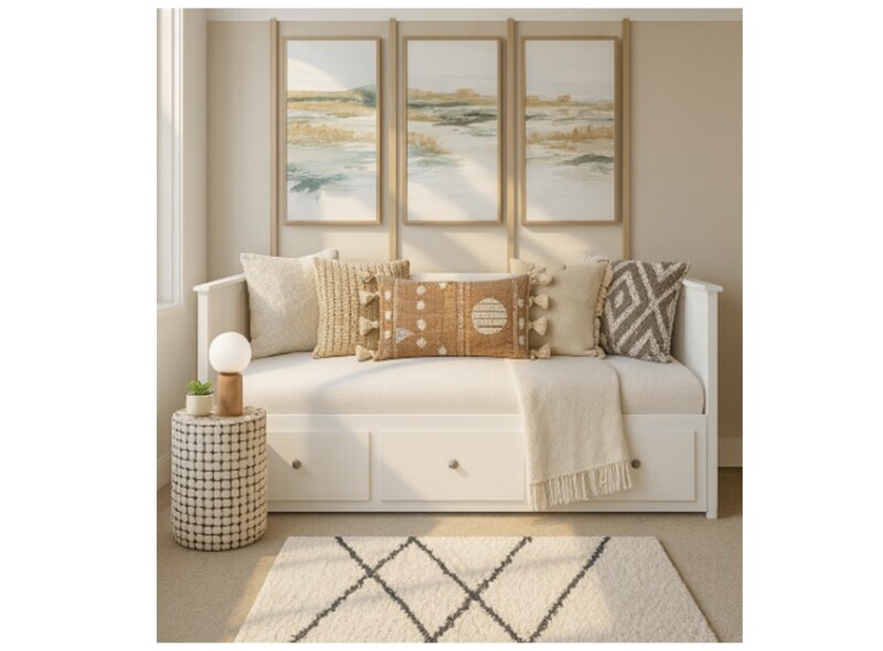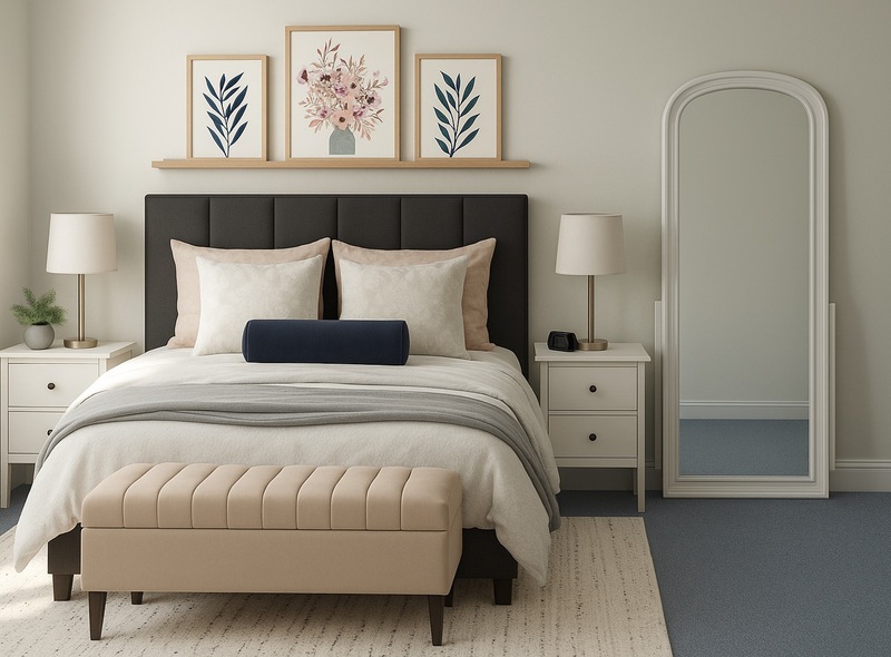 You can then get a feel for whether you can add any other pieces of furniture to your bedroom like a desk or seating area. Try not to cram too much in - you don’t want to feel cramped.