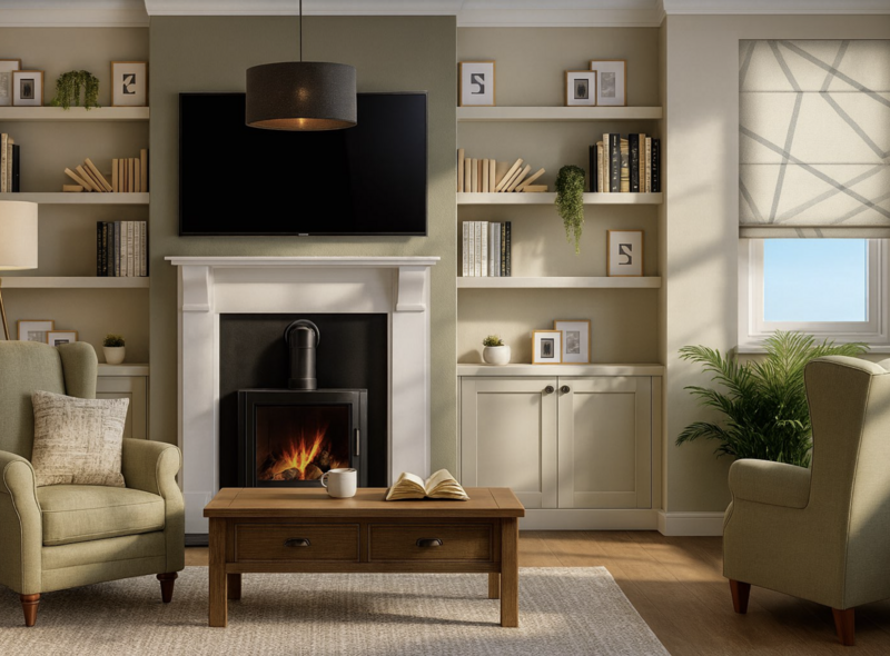 However if you’d like a more contemporary and minimalist living room then we’d advise investing in built in bespoke furniture. That way you can sweep all the clutter away in the cupboards and out of sight!