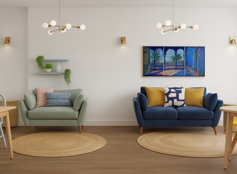 Remember there’s no need to paint the whole room in the same colour. In fact, paint is another great way to create distinctions between the zones. For example you can choose a dark blue on a feature wall behind your sofa to make it clear this is a space for settling down and relaxing.