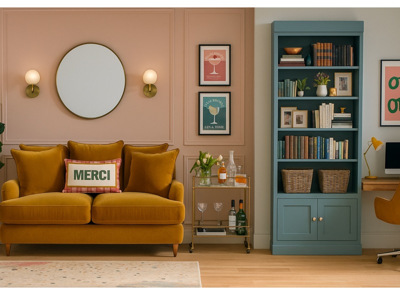 Consider repositioning your bookshelf so that it comes out into the room acting as a modular wall between zones. It can become a stand out feature through clever styling and it also doesn’t block light which is a big win!