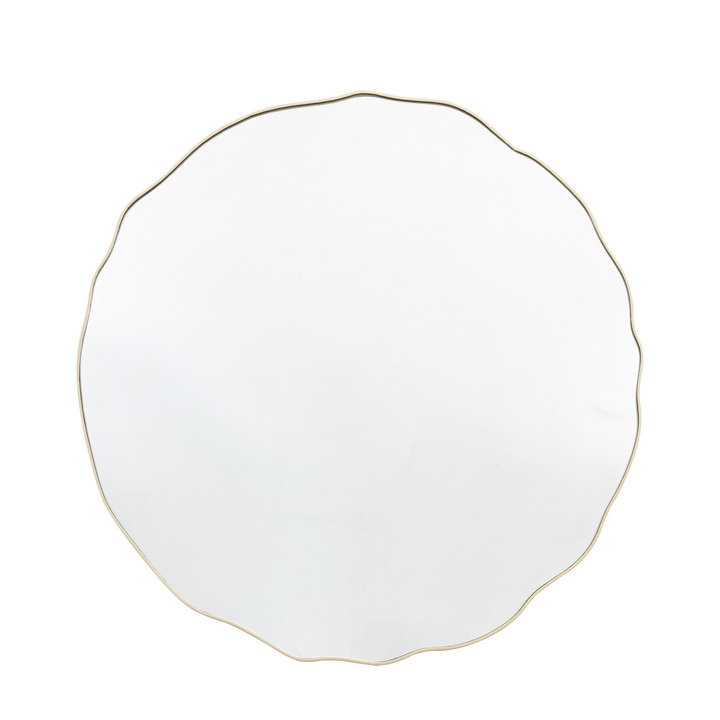Large mirror with a decorative elegant gold coloured metal frame. Ideal for making an impactful feature in a room above a sofa or large fireplace. Material: MDF / Glass Type - Mirror: Wall Style - Mirror: Modern Shape - Mirror: Round Hanging Orientation: Portrait Glass Type: Plain Glass Size mm: 1006 Frame Width: 5mm Frame Colour: Champagne Fixing Type: D-Ring Anti Topple Kit Included: Yes