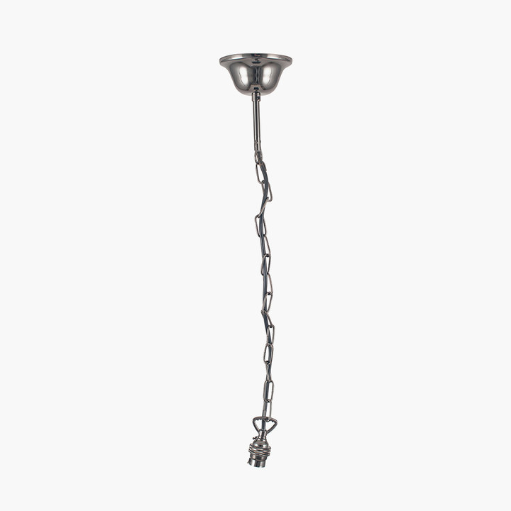 Classically styled, black chrome metal ceiling fitting with B22 lamp holder which can be used to attach any shade of your choice to the ceiling. Bulb shape: GLS Bulb type: B22/BC CBM: 6.2899999999999998E-2 Cable colour and material: Black, Plastic Cable type: 2 x 0.75mm² with an Earth wire in ceiling cup Ceiling cup diameter: 10 Ceiling cup height: 6 Country of origin: China Dimmable: Yes IP rating: 20 Lampholder casing: No Lampholder casing finish: n/a Lampholder colour: Black Lampholder type: B22 Lighting Class: Class 1 Mail order packaging: 1 Master code: 38-003 Material 1: Metal Material 2: n/a Material composition (%): Steel 100% Max wattage: 10-12W LED Minimum drop height: 15 Number of bulbs: 1 Number of product boxes: 1 Outer box depth (front to back): 36 Outer box height (top to bottom): 46 Outer box quantity: 24 Outer box weight: 7.95 Outer box width (side to side): 38 Packaging status: 3 Pendant feature 1 dims: n/a Pendant feature 2 dims: n/a Pendant feature 3 dims: n/a Polybag warning label: Yes Product status: 3 Product weight: 0.1 Single product depth (front to back): 6 Single product height (top to bottom): 60 Single product width (side to side): 6 Spec sheet: Elec Pendants UKCA/CE label: Yes User guide included: Yes Variant position: 1 Colour 1: Silver Colour 2: n/a