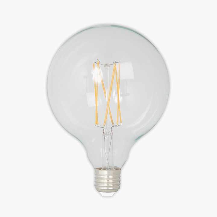 This LED, globe light bulb has a clear finish, creates a warm glow and has a lifetime of 20000 hours. Wattage - 4W. Lumen Output - 350. Colour Temperature - 2300 ºK. E27 Bulb lifetime: 15000 Bulb type: E27/ES CBM: 0 CRI: 80 Colour temperature: 2700 Country of origin: The Netherlands Dimmable: Yes Energy label: F IP rating: 20 Lumen: 470 Mail order packaging: 3 Master code: CAL-425474 Material 1: Glass Material 2: Metal Material composition (%): Glass 90%, Metal 10% Number of product boxes: 1 Outer box depth (front to back): 69 Outer box height (top to bottom): 40 Outer box quantity: 30 Outer box weight: 7.8 Outer box width (side to side): 41 Packaging status: 3 Product status: 3 Product weight: 0.09 Single product depth (front to back): 13 Single product height (top to bottom): 18 Single product width (side to side): 13 Spec sheet: Bulbs UKCA/CE label: Yes User guide included: No Variant position: 1 Voltage: 220-240V Wattage: 5 Colour 1: Clear Colour 2: Silver