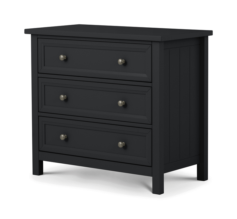 Materials: MDF {• |||product feature 1}• Anthracite lacquered finish. • Attractive pewter handles. • Part of Julian Bowen's Maine bedroom collection. • 12 month product guarantee. Level of Assembly Required: Full Assembly Required Build Time: 45 $ Total Net Weight: 26.5 Cleaning Instructions: Wipe Clean with Dry Cloth Foot/Leg Height: 8