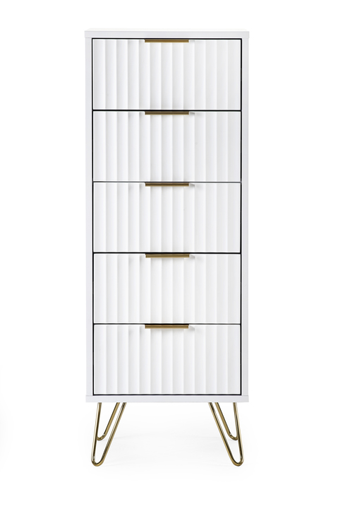 • Sleek and Modern Design: The Julian Bowen Murano 5 Drawer Tallboy features a sleek matt white finish, adding a touch of modern elegance to any bedroom decor. Its clean lines and contemporary design make it a versatile addition to your home.