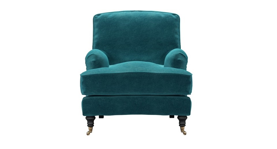 A classic design and one of our most popular sofas. back cushions: feather and fibre color: green,blue covers: fixed seat cushions: feather wrapped foam size: Armchair