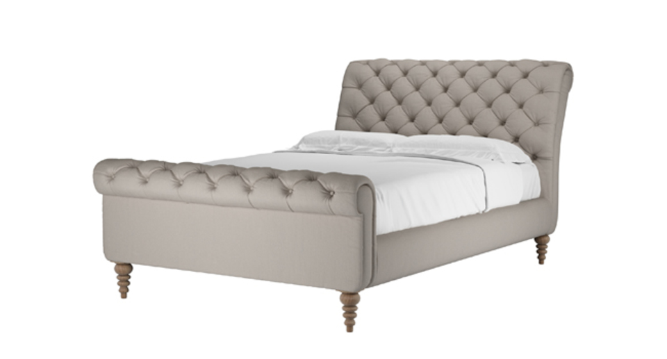 Knightsbridge Double Bed in Stone Brushed Linen Cotton
