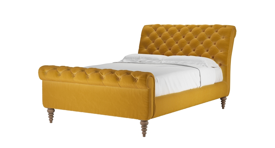 Knightsbridge Double Bed in Butterscotch Cotton Matt Velvet