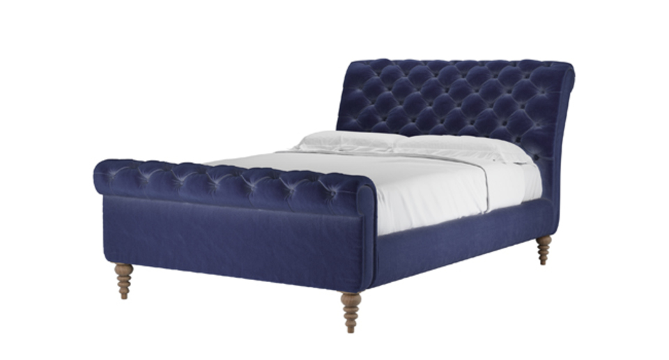 Knightsbridge Double Bed in Prussian Blue Cotton Matt Velvet