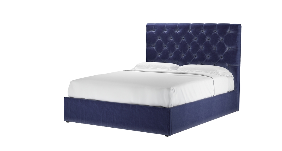 Rosalie 130cm King Ottoman Bed in Prussian Blue Cotton Matt Velvet