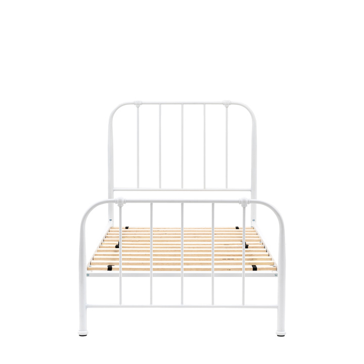 With a touch of tradition, this white ironwork style bed will let you create the perfect cosy bedroom. Inspired by Victorian style bedsteads and capturing that antique aesthetic this single bed is full of feature details and is beautifully finished making it a style classic. Also available in white and in a choice of sizes. Material: Mild Steel / Wooden Slat Leg / Feet Height: 265mm Clearance to Floor: 265mm Assembly Required: Yes - full Footboard Height: 660mm Under Bed Storage Height: 275mm