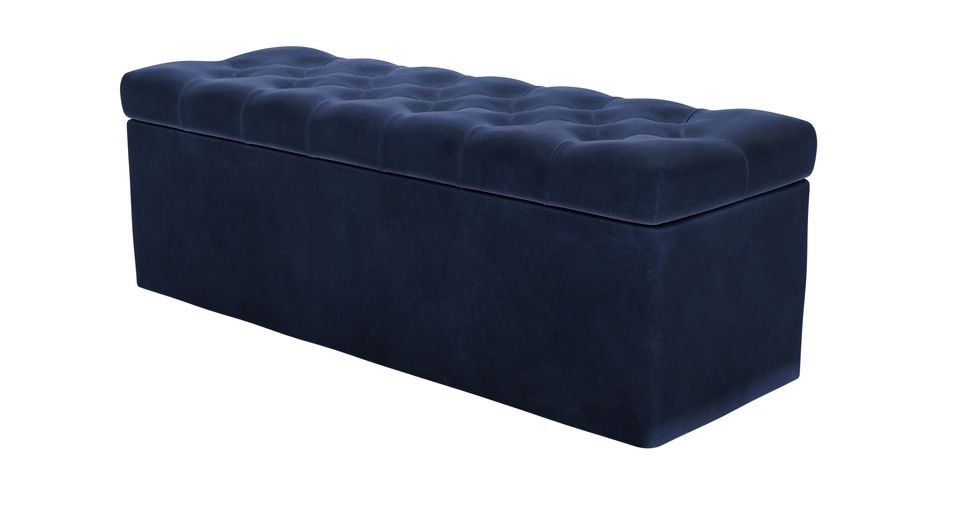Please.....put your feet up, make yourself at home. back cushions: see website color: blue covers: see website seat cushions: see website size: Storage Bench