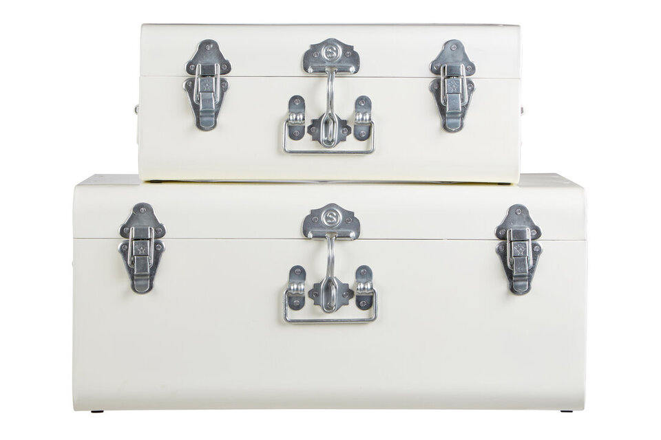 "Cool and compact, these retro trunks come in two different sizes and can be stacked neatly together or placed individually around the room for decorative effect. They're ideal for the storage of a wide range of items and look great in any space." materials: Metal, Metal composition:Metal, Wood Care & Use Instr: "Wipe with a soft cloth, do not use abrasive cleaners." Dishwasher Safe: N Electric Hob Safe: N Freezer Safe: N Gas Hob Safe: N Halogen Hob Safe: N Induction Hob Safe: N Materials: Metal, Metal Microwave Safe: N Oven Safe: N Product Depth: 32 Product Height: 23 Product Weight (kg): 4.75 Product Width: 52 Item Assembled: Y