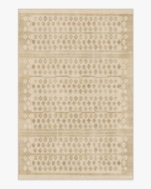 Naturally tranquil. Confidently liveable. Our goop Lucia Natural Rug seamlessly blends organic elements with modern aesthetics. Inspired by Spanish Revival designs, this symmetrical style features an orderly repeated pattern field accented by simple yet textural borders. The colour palette exudes liveable luxury with a variety of soft, natural warm hues, punctuated by pops of light cream and clay. Water-resistant, stain-resistant, and machine-washable. Rug colours may vary slightly according to your device and the lighting in your space. 200 x 290 cm | Machine Washable Area Rug | Kid & Pet Friendly | Indoor Rugs | Lucia Natural Flatwoven Rug by goop | Ruggable