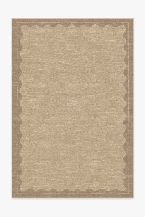 Less is more. Our Orla Tan Rug features a whimsical scallop frame complemented by a light beige background to create a design reminiscent of a hand-knotted configuration. Water-resistant, stain-resistant, and machine-washable. Rug colours may vary slightly according to your device and the lighting in your space. 200 x 290 cm | Machine Washable Area Rug | Kid & Pet Friendly | Indoor Rugs | Orla Tan Flatwoven Rug | Ruggable
