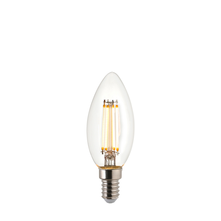 Bring a touch of elegance and efficiency to your lighting with this LED filament candle lamp. Designed with a classic flame-tip shape and clear glass, it combines vintage charm with modern LED technology. The exposed filaments emit a warm, inviting glow, perfect for chandeliers, wall sconces, or decorative fixtures. Material: Glass / Aluminium Alloy Product Zone: Un-Zoned Bulb Included: Yes Bulb Type: 2.2W LED E14 Warm White Kelvin: 2700 Dimmable: Non Dimmable Voltage: 220-240V IP Rating: 20