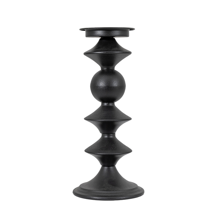 The classic shape of this candlestick in black metal feels like a fresh take on a classic design, updating a traditional turned style candlestick. Available in a matching smaller size, the pair look fantastic grouped together. Candle not included. Material: Iron Product Zone: Indoor