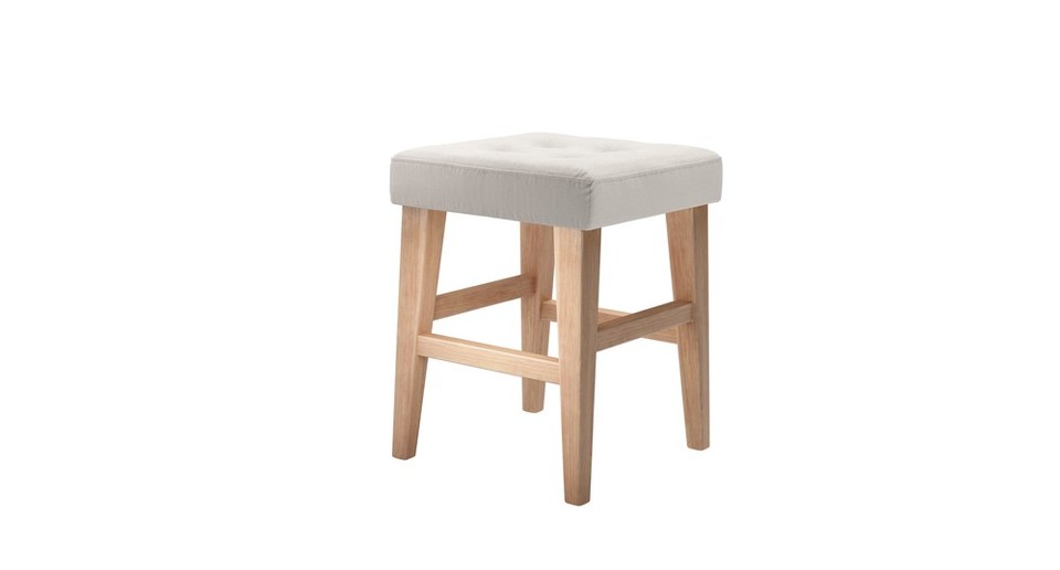 Buttons Short Stool in Taupe Brushed Linen Cotton