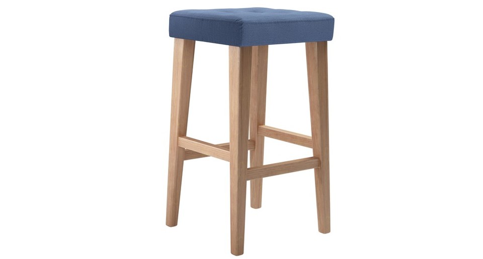 Buttons Tall Stool in Oxford Blue Brushed Linen Cotton