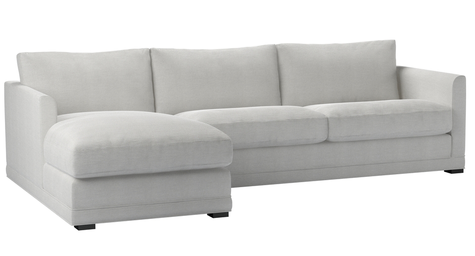 A sofa made for corners. back cushions: feather and fibre color: natural,white,grey covers: fixed seat cushions: feather wrapped foam size: Large Left Hand Chaise