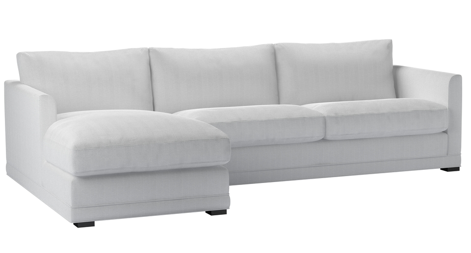 A sofa made for corners. back cushions: feather and fibre color: natural,white,grey covers: fixed seat cushions: feather wrapped foam size: Large Left Hand Chaise