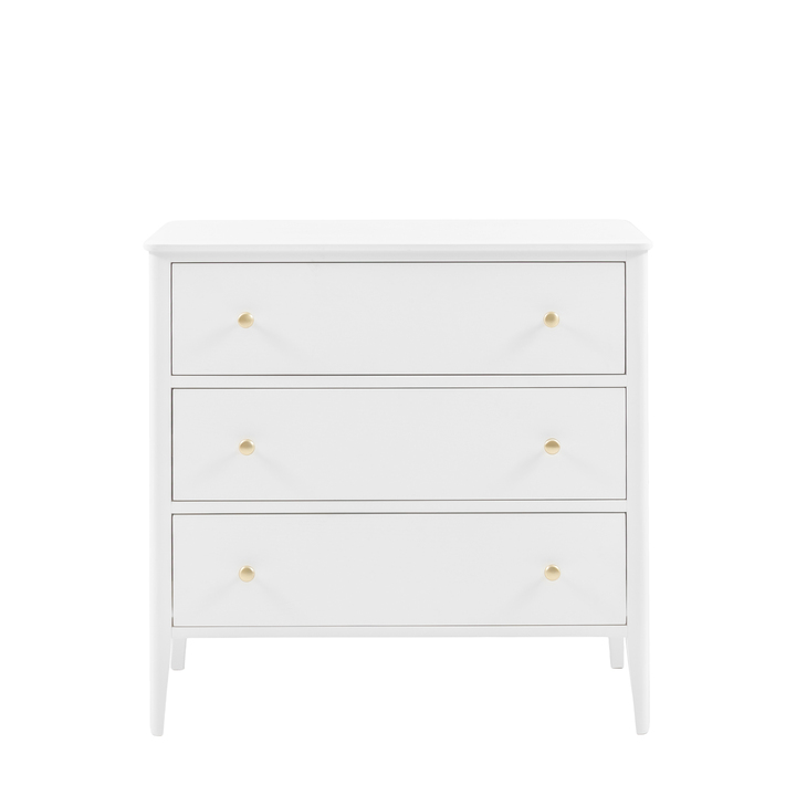 Organise any space with this elegant 3 drawer chest. Featuring three generous drawers, this chest offers ample storage while adding sophisticated style to a room. The chic white finish is beautifully complemented by gold handles, bringing a touch of modern luxe to a bedroom, dressing room, or living area. Material: MDF / Rubber Wood Product Zone: Indoor Clearance to Floor: 172mm Storage: 3 Drawers Internal Drawer Size: 760 x 430 x 194 Anti Topple Kit: Yes