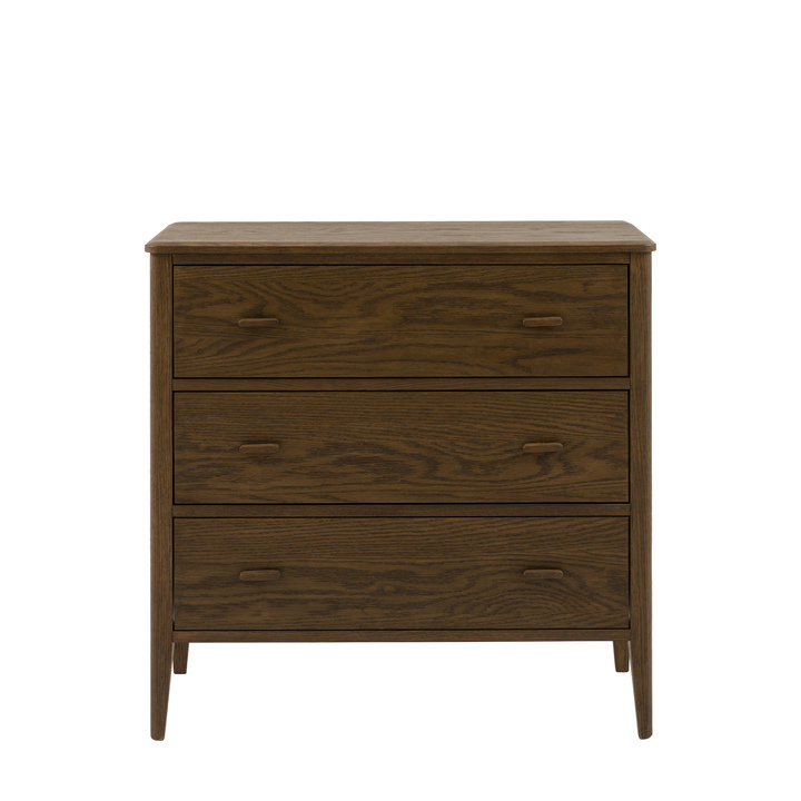Infuse your home with natural warmth with this 3 drawer chest. Featuring three generous drawers and elegant wood drawer pulls, this chest offers ample storage for clothing, linens, or personal items. Its rich, dark wood finish with strong visible grain brings a comforting and inviting touch to any bedroom, dressing room, or living area, blending organic beauty with practical organisation. Material: MDF / Rubber Wood Product Zone: Indoor Clearance to Floor: 172mm Storage: 3 Drawers Internal Drawer Size: 760 x 430 x 194mm Anti Topple Kit: Yes Additional Information: Walnut Finish