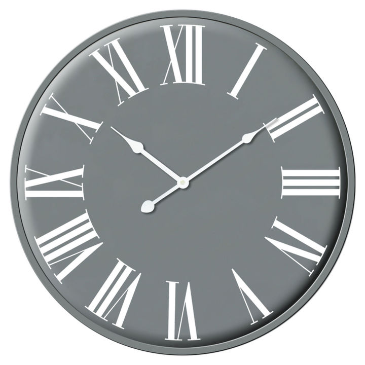 Sleek in design and colourways, this Rothay Large Wall Clock displays a monochromatic duo of white and light grey. The large white roman numerals and clock hands contract beautifully against the light grey face of the clock. Measuring at 49cm diameter, the wall clock will hang proudly in any room of the home. It'll suit contemporary, scandi and modern interiors. Material: METAL Colour: GREY Delivery Size: Small Weight: 1.2100