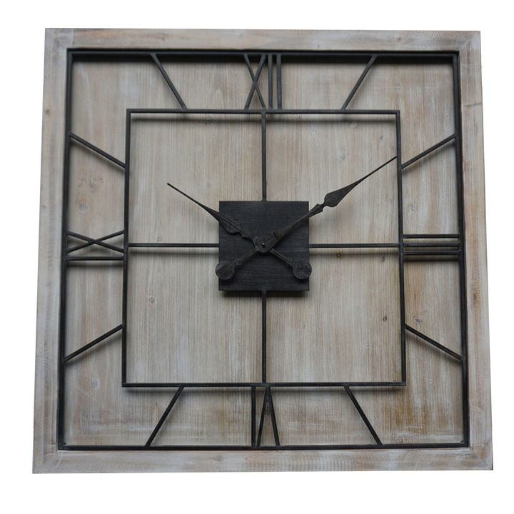 Discover a masterpiece that merges rustic charm with contemporary design through this captivating square wall clock. The artfully layered grey metal roman numerals create fascinating depth against the natural wooden backdrop, producing an enchanting interplay of materials and textures. Perfect for modern farmhouse, industrial chic, or minimalist spaces, this versatile timepiece pairs beautifully with metallic accents, textured wicker pieces, and atmospheric lighting. Consider styling alongside brushed metal accessories, decorative mirrors, or natural elements like pussy willow branches for a cohesive interior story. The understated grey and wood palette allows for seamless integration with both neutral and bold color schemes, while its substantial proportions make it an engaging focal point for any wall arrangement. Material: METAL Colour: BROWN Delivery Size: Small Weight: 7.5900