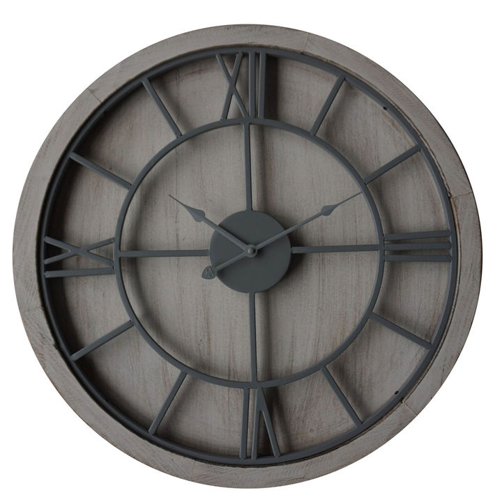 This is the Williston White Wall Clock. An eye-catching round wall clock which will fit with a variety of decor schemes. The light grey metal roman numerals and movement gains great stand-out against its white washed wood surround. Supplied with hook for wall mounting already attached to the frame, this timepiece will be simple to hang and immediately enjoy. Add 1 x AA battery to start the clock mechanism. Material: METAL Colour: WHITE Delivery Size: Small Weight: 2.9500