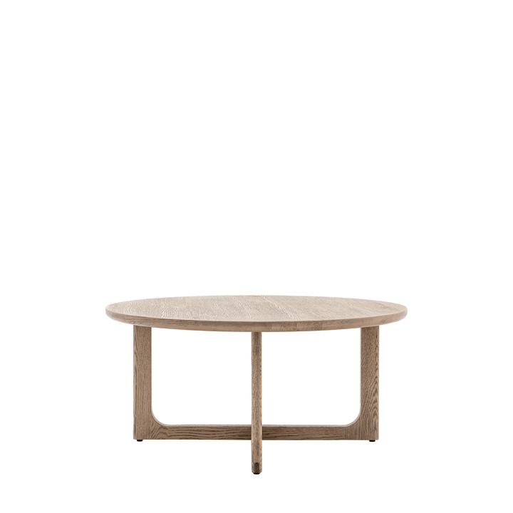 Crafted from the finest oak and structural oak veneers where practical, this beautiful coffee table offers elegant design, with its simple round top and beautifully shaped underframe. The wood has a smoked oak finish. The table is also available in a natural finish, and matching pieces are available. Material: Oak / Oak Veneered MDF Shape: Round Leg / Feet Height: 370mm Clearance to Floor: 370mm Assembly Required: Leg / Foot Only