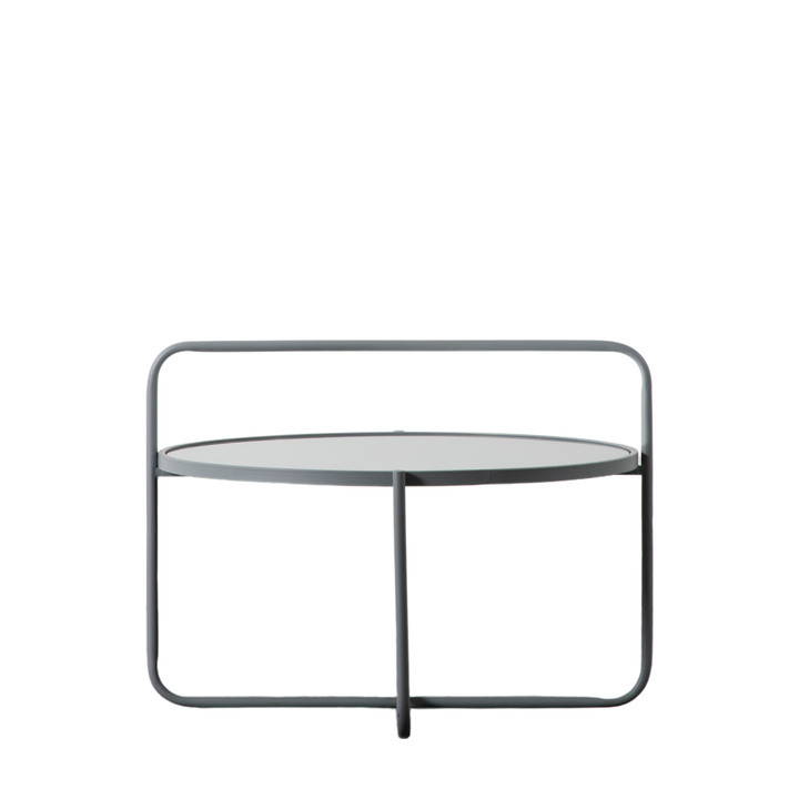 Add a contemporary touch to a room with this stylish coffee table. The stunning design features a continuation of one section of the metal base, up and over the table to create a ‘handle’ effect. There is a matching side table, and both are also available in black and white. Material: Iron / MDF / Glass Assembly Required: Yes - top only Additional Information: Dimensions are the size of the table top