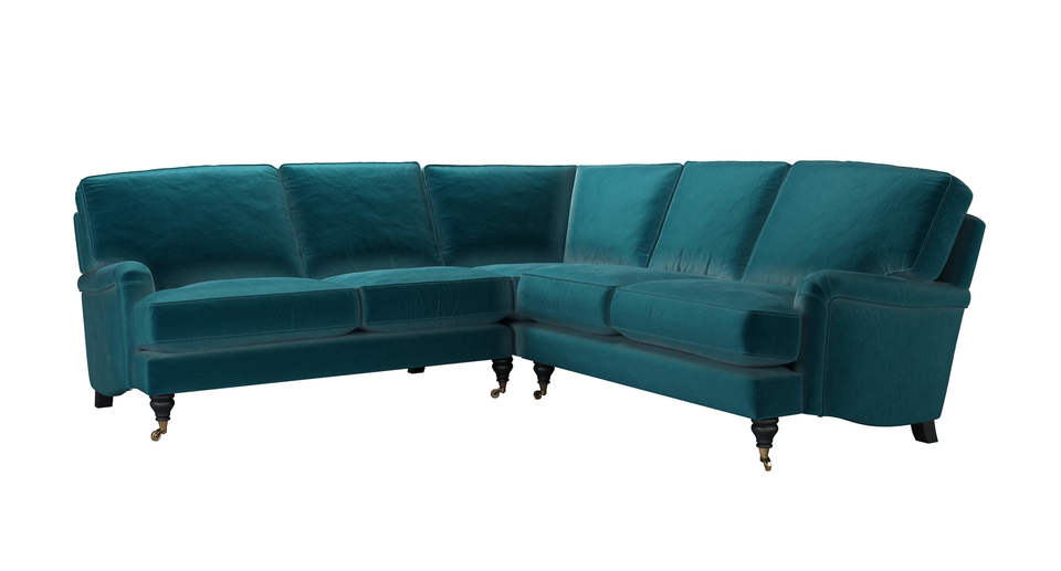 Bluebell Medium Corner Sofa in Deep Turquoise Cotton Matt Velvet