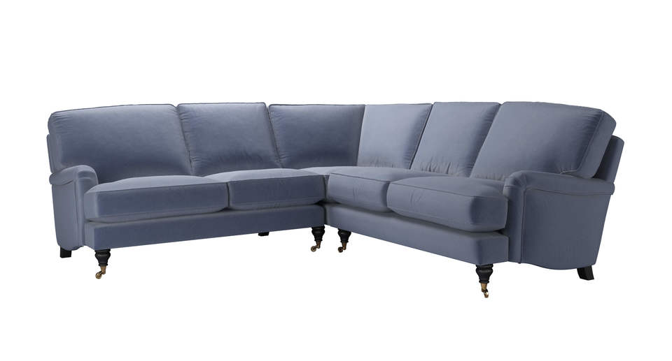 The Bluebell is an undisputed classic. Its turned wooden legs give it a very elegant, understated feel. Supremely comfortably and a real pleasure to live with, whether in a classic or modern setting. The Bluebell is also available as a 'breakdownable' sofa which means even if your home has restricted access you can still enjoy Bluebell's charm and comfort as we will deliver it to you in pieces and assemble in upon arrival. back cushions: feather and fibre color: blue covers: fixed seat cushions: feather wrapped foam size: Medium Corner Sofa