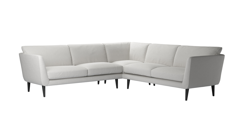 The Holly's retro-inspired shape and simple elegance is a nod to the sleek and curvy mid-century style. A neat frame - with high, splayed arms, a deep seat, and lots of comfy cushions - sits on tall tapered legs. This is one cool sofa. back cushions: 100% feather color: natural,white covers: fixed seat cushions: feather wrapped foam size: Medium Corner Sofa