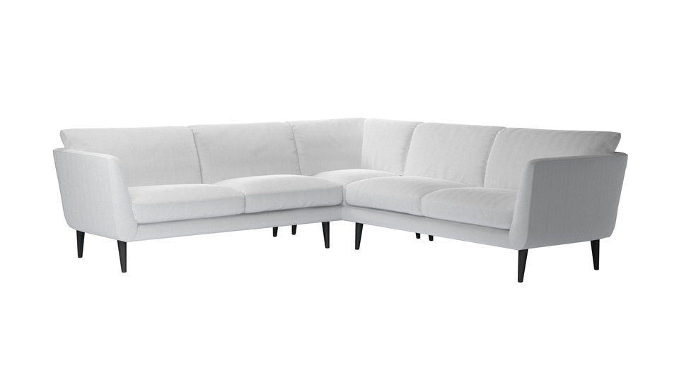 The Holly's retro-inspired shape and simple elegance is a nod to the sleek and curvy mid-century style. A neat frame - with high, splayed arms, a deep seat, and lots of comfy cushions - sits on tall tapered legs. This is one cool sofa. back cushions: 100% feather color: natural,white,grey covers: fixed seat cushions: feather wrapped foam size: Medium Corner Sofa