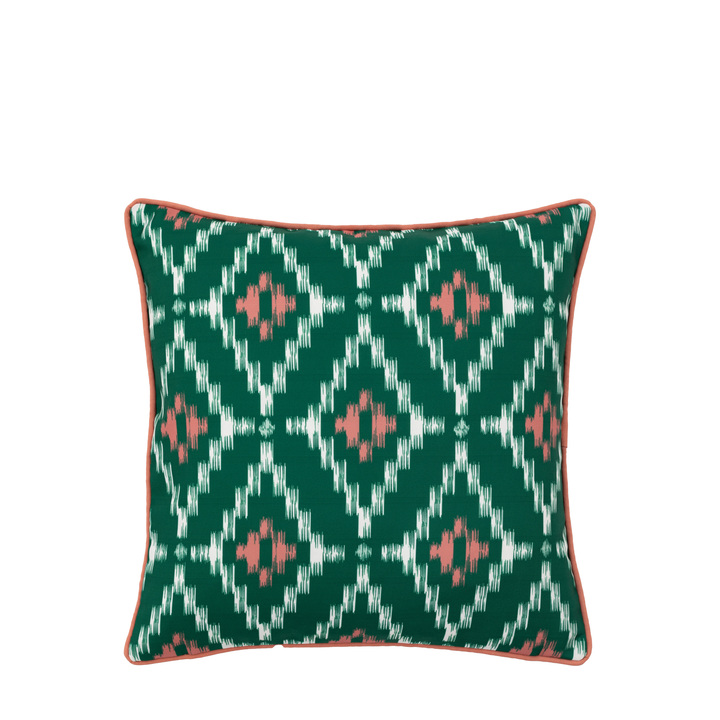 Perfect for adding the wow factor to your space inside or out. This cushions striking coral & green geometric pattern and showerproof fabric make it a must have addition to your space, wherever that is. Material: Polyester Product Zone: Indoor Fabric Weight: Front: 210 GSM / Rear: 210 GSM Filling - SOFT FURN: Poly Fibre Filled in UK: Yes Technique: Front: Printed / Rear: Printed Care Instructions - Textiles: 30 Degrees / Do Not Bleach / Do Not Tumble Dry / Do Not Iron / Do Not Dry Clean / Wash Dark Colours Separately