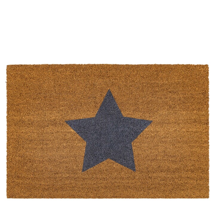 A classic coir doormat with a stylish grey star design. Ideal for cleaning boots and shoes before entering the house. Material: Coir / Latex Technique: Printed Care Instructions - Textiles: Spot Clean Only / Do Not Bleach / Do Not Tumble Dry / Do Not Iron / Do Not Dry Clean