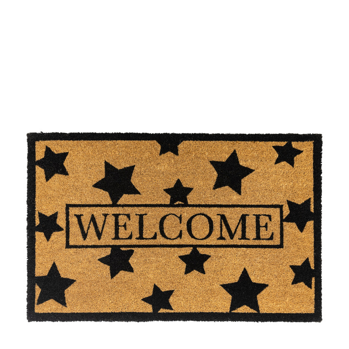 Create a welcoming and whimsical entrance with this charming doormat. Adorned with stars and a bold border, the doormat balances practicality and style. Material: Coir / PVC