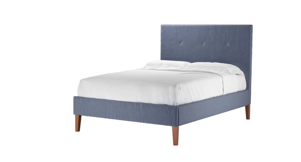 Understated, the Avery is a versatile piece created to suit any bedroom. The cushioned headboard features three buttons for additional detail, while maintaining a timeless style. Tailor your design with two heights available, plus over 100 fabrics to choose from! back cushions: see website color: blue covers: see website seat cushions: see website size: Double Bed (130cm)