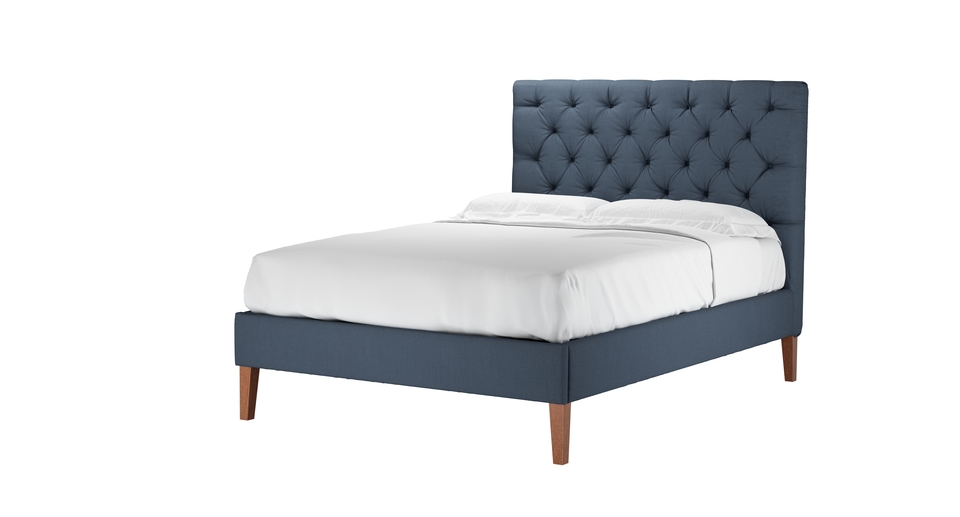 Rosalie 130cm Double Bed in Midnight Blue Brushed Linen Cotton