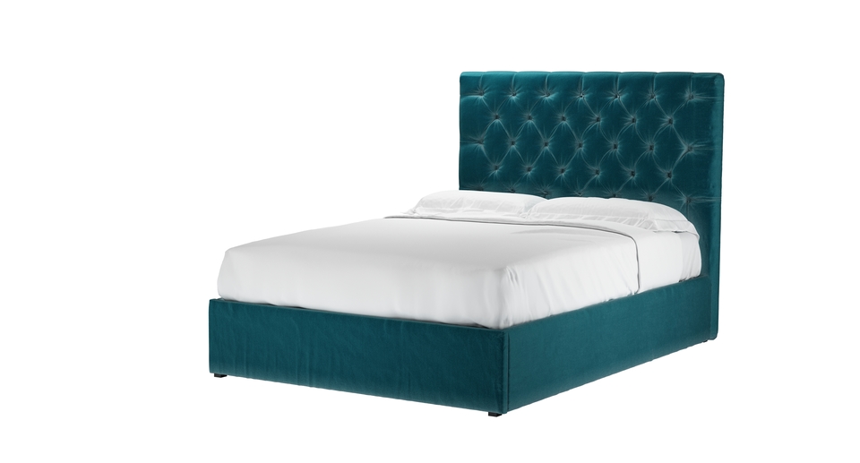 Rosalie 130cm Double Ottoman Bed in Deep Turquoise Cotton Matt Velvet