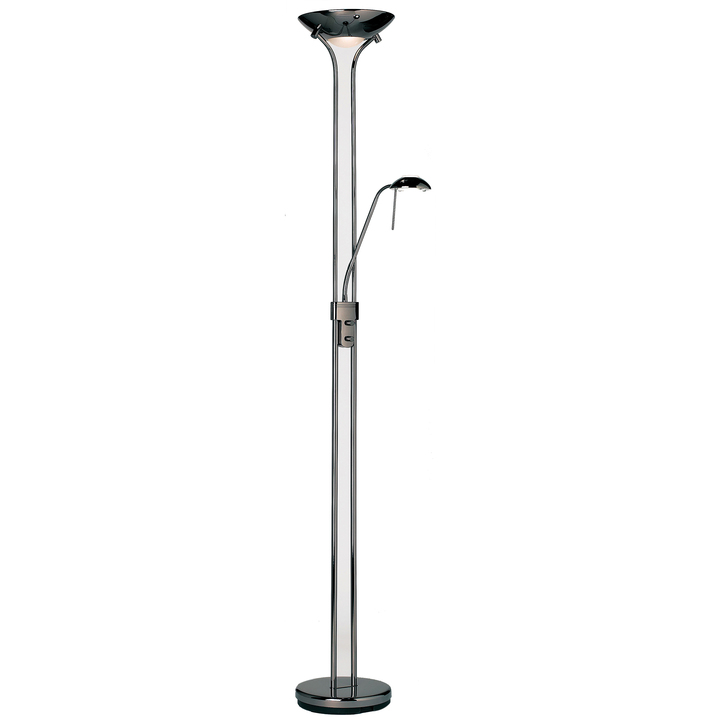 A tall 2 light floor lamp with a double stand supporting an uplighter as well as an adjustable branch holding a reading lamp. Has a gunmetal finish and is complete with a double rotary dimmer switch. Other colour options available Material: Glass / Steel Product Zone: Indoor Bulb Included: No Bulb Type: 230W R7s tungsten (117mm) & 33W G9 clear capsule Product Lumens: 4645 Lumens Per Watt: 20 Kelvin: 3000 Cable Length: 1800mm Switch Type: Double Rotary Dimmer Switch Dimmable: Dimmer Included Voltage: 220-240V Class: Class 1 IP Rating: 20
