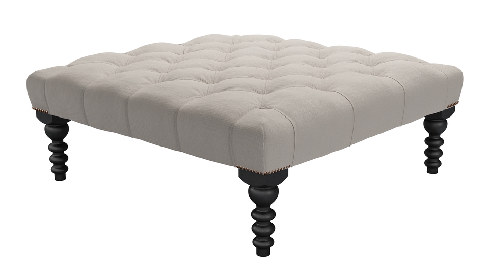 A real classic with luxurious, deep pleated buttons that will add glamour and sophistication to any room. Great for looking at, putting magazines on and for putting your feet up too. Buttons and twiddly legs! This is one fancy footstool (https://www.sofa.com/gb/accessories/footstools). back cushions: see website color: grey,natural covers: see website seat cushions: see website size: Large Square Footstool