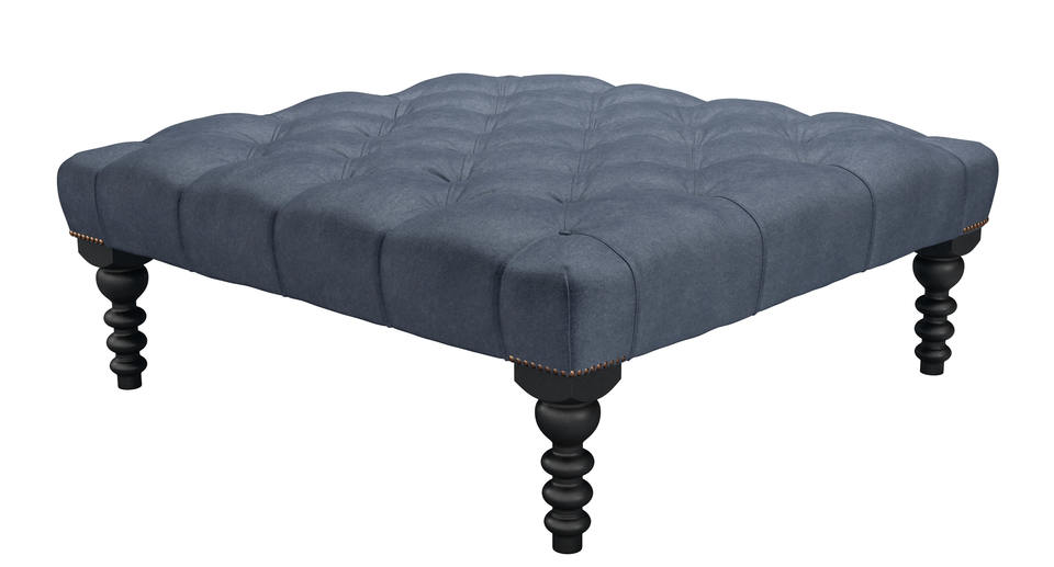 A real classic with luxurious, deep pleated buttons that will add glamour and sophistication to any room. Great for looking at, putting magazines on and for putting your feet up too. Buttons and twiddly legs! This is one fancy footstool (https://www.sofa.com/gb/accessories/footstools). back cushions: see website color: Blue, Grey covers: see website seat cushions: see website size: Large Square Footstool
