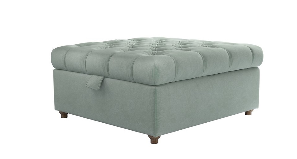 Valentin Medium Square Storage Footstool in Sage Smart Velvet
