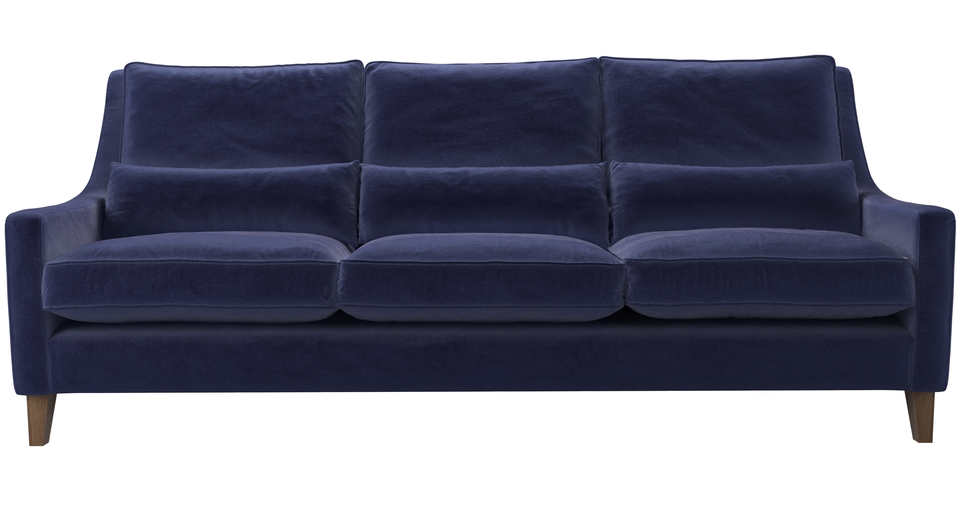 Iggy High Back 4 Seat Sofa in Prussian Blue Cotton Matt Velvet