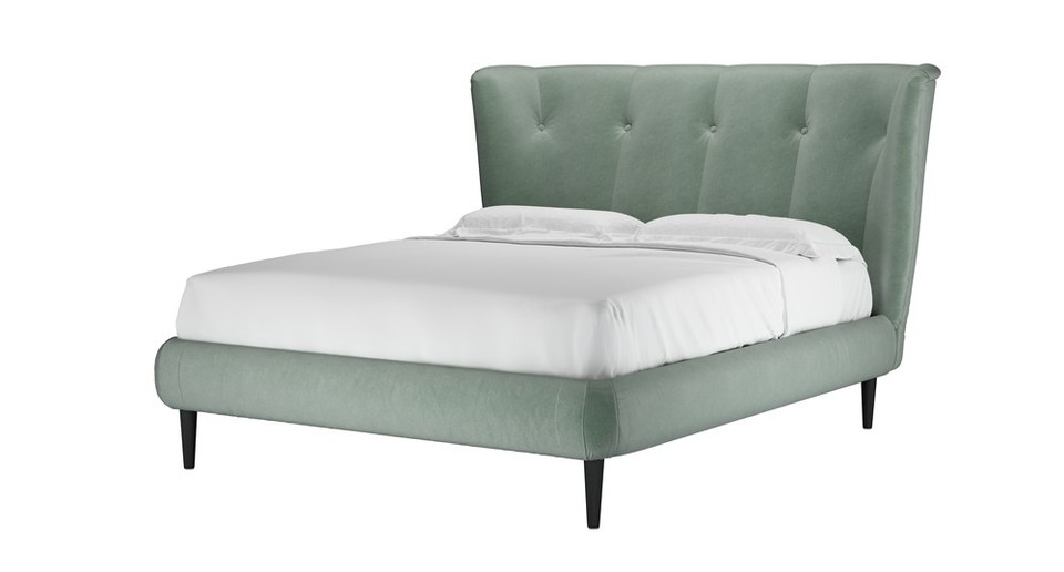 Mid-century charm, traditional elegance. back cushions: see website color: green covers: see website seat cushions: see website size: King Size Bed