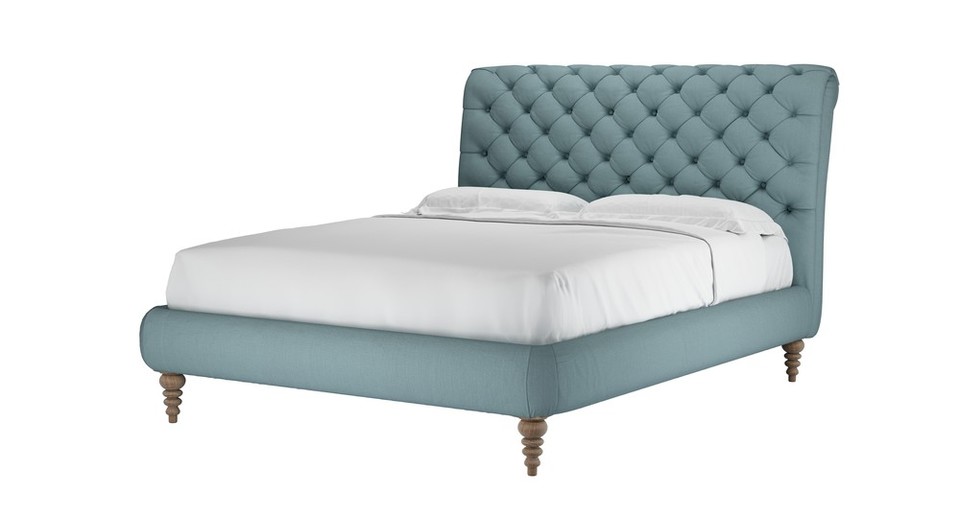 Knightsbridge without Footboard King Bed in Lagoon Brushed Linen Cotton