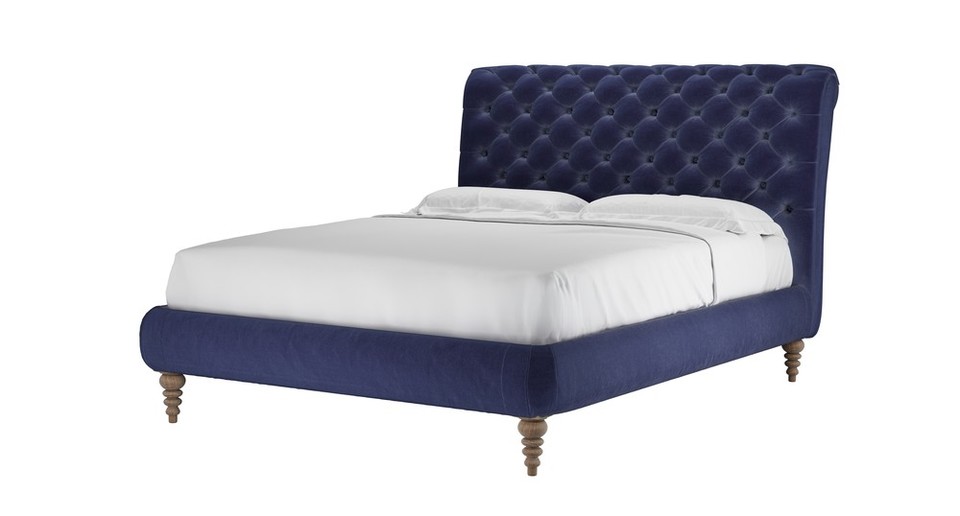 Knightsbridge without Footboard King Bed in Prussian Blue Cotton Matt Velvet